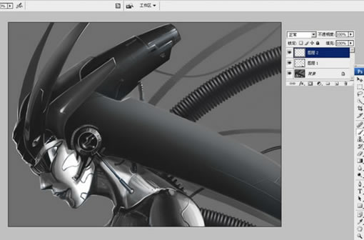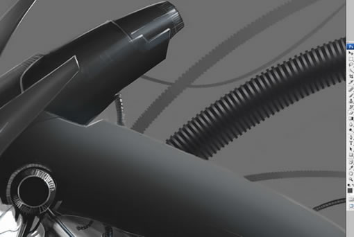 7、不断的深入细节。这里要注意的是同为金属质地,但由于表面的光滑程度不同,所以对光的反射程度就不同。让你的作品真实可信,就必须对质感进行细致的刻画。