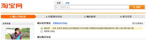 如下图,在此页面可以限制淘宝买家按线性结构完成购买流程。上方的1,2,3,4的步骤很好的引导用户一步一步完成任务,并告知用户所在流程中的位置。