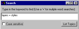 要搜寻包括两个关键词的文件(例如,layers 和 styles),关键词之间用加号 (+) 分开。![]() |
