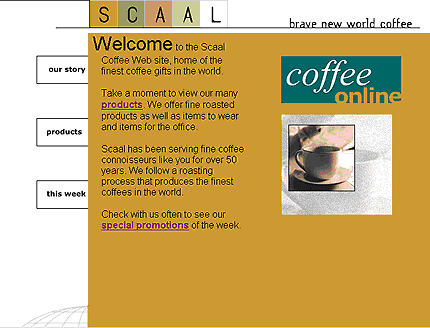 在本章节中,用户将要为一个虚构的公司,Scaal Coffee,创建一个经营咖啡生意的网站。