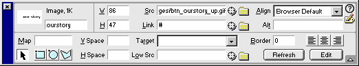 注意:在 Link 框中有一个数字符号 (#),这时在你为图像赋予 Swap Image behavior 的时候创建的。不要将这个符号删除掉;它将被链接文档的名字所取代。 | |