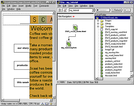 6 | 点击标题栏激活站点窗,或者选择 Window > Site Files。如果需要,调整文档窗大小,这样你就可以沿左边排列文档窗和站点窗了。