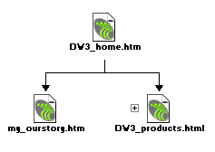 站点窗内文件旁边出现加号 (+),表示该文件包含指向其它文档的链接。点击加号可以扩展站点地图,显示相关文件;点击减号 (-) 可以收缩对站点地图的查看。 | |