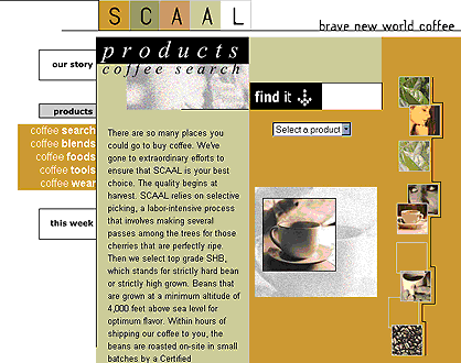 所谓跳转菜单就是一个选项弹出菜单,是用来链接并在浏览器窗打开文件用的。这里你要创建一个跳转菜单,允许用户通过跳转菜单迅速从产品索引网页跳向 Scaal 站点的指定的产品网页。