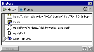 History 面板追踪用户在 Dreamweaver 中工作的每一个步骤。要显示历史面板,选择 choose Window > History。