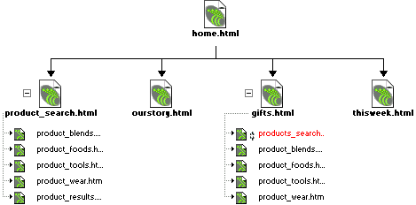 在默认情况下,站点地图以二级结构显示站点,从主页开始。点击页面旁边的加号或减号标记 (Windows) 或者扩展箭头 (Macintosh) 可以显示或隐藏二级以下的链接页面。