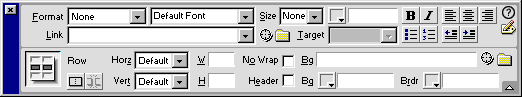 使用 Horz 弹出菜单可以对单元格、列或行的内容进行水平排列。排列可以沿左边、右边或居中的方式进行,或者按浏览器默认的排列方式排列(通常是对于一般的单元格沿左边排列,对于标题单元格居中排列)。 |