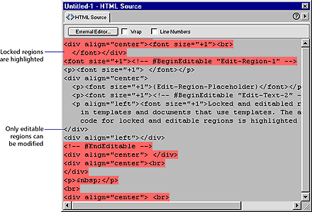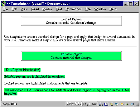 可编辑和不可编辑区域在文档窗中是加亮显示的(有关设置加亮色参数的介绍,参阅 模板参数选项。)