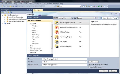 1、在vs2010中创建as3/air/flex项目