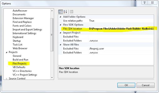 安装好以后,记得设置flex sdk的路径 vs2010-->tools-->option