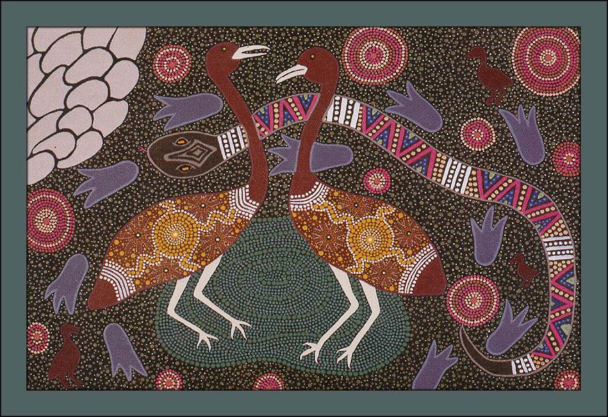 如果说土著人生活中有哪些东西能够引起白人的赞赏和共鸣,那么,首当其冲应该是土著艺术。澳洲土著人虽处在较为原始的生活环境里,但他们的文化艺术却相当发达,令不少当代艺术家们叹为观止。今天,土著艺术已同现代艺术一起成为澳大利亚当代艺术的两大主流。有人用"梦想"两字来概括澳洲土著艺术的全部,颇为贴切。土著人透过艺术的梦想,跟他们的祖先交流心灵。在梦想的世界里,人们仿佛看到了关于天地创造、民族起源的神话。从梦想中看到了伊索寓言的童话和充满幽默、迷离、古怪的小插曲,对于土著人来说,梦是描述丰富而有内在联系的观念,它包括价值与精神。这实际上是一种信仰,使土著人相信,人生前死后永远结合在一起。他们把做梦看作为创造万物之时,对此加以口述,代代相传,从而保证土著文化和社会的连续性。