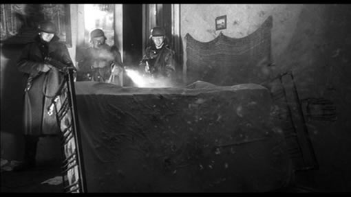白天逃过一劫的犹太人在夜晚又遭到了屠杀。第二张建筑窗户透出的亮光不是灯,而是机枪开火的火光。