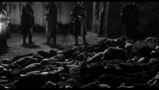 | 屠杀开始。机枪开火的亮光在墙上投下诡异的影子。