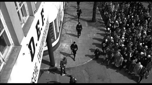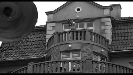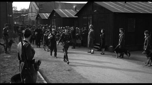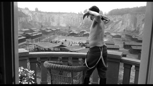 | 阿蒙哥特清晨起来,用狙击枪随意处决营里的犹太人。犹太人狂奔逃命。