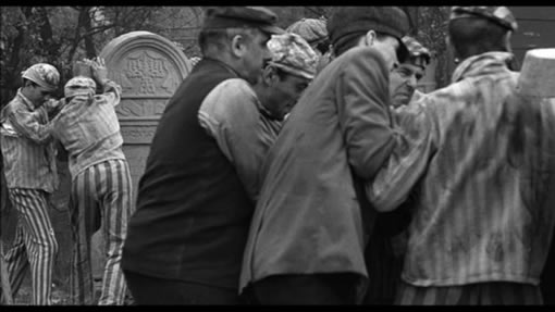 辛德勒的工人也被赶到集中营内,工厂停产了。辛德勒来找阿蒙。德军指挥犹太人将墓碑推倒,铺成集中营里的道路。